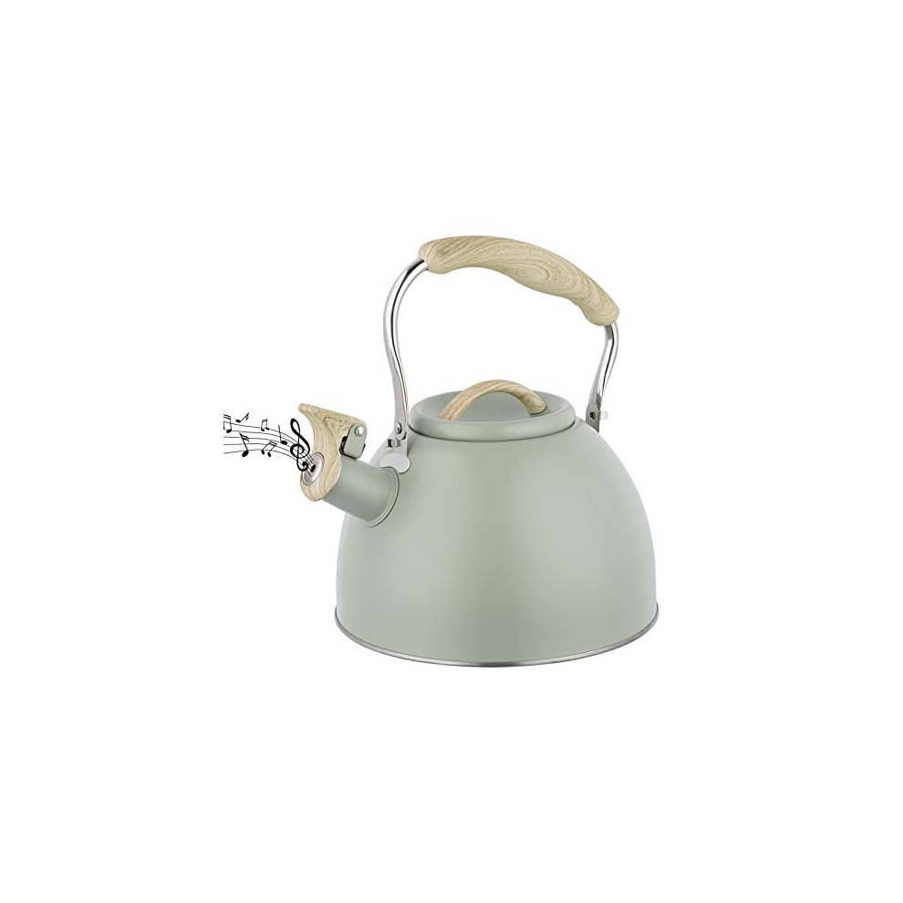 Stove Top Kettle, 2.7 Quart Whistling Kettle for Gas Hob with Wood Pattern Hand