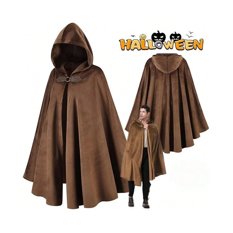 DELIVESS Renaissance Hooded Cape Velvet Cloak with Hood for Mens Medieval Hobbit Halloween Costume (51", Brown)