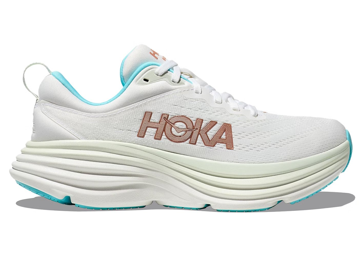 Hoka UK 4.5B Bondi 8 Womens Running Trainers White/ Frost/ Rose Gold 1127952 New