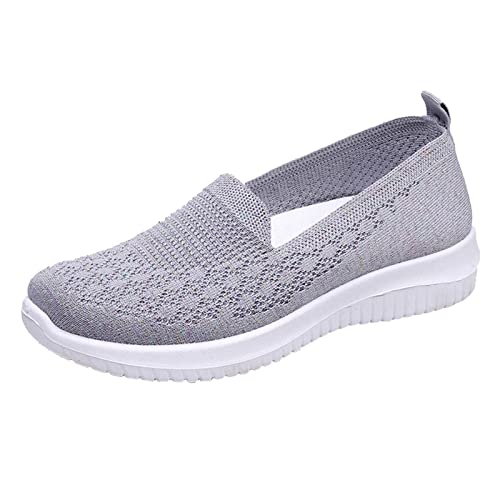 Women's Slip On Shoes Shoes Men's One Foot Shoes Fly Woven Casual Walking Shoes Lightweight and Breathable Elderly Shoes Middle and Elderly Sports Shoes Summer Trainers for Women (Grey, 7)