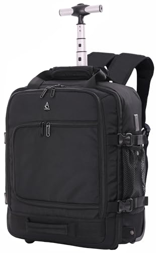 WIRABO Travel Backpack with Wheels, 17.3 inch Rucksack on Wheels School Wheeled Backpack Business Weekend Bag Flight Approved Overnight Holdall for Men Women Black