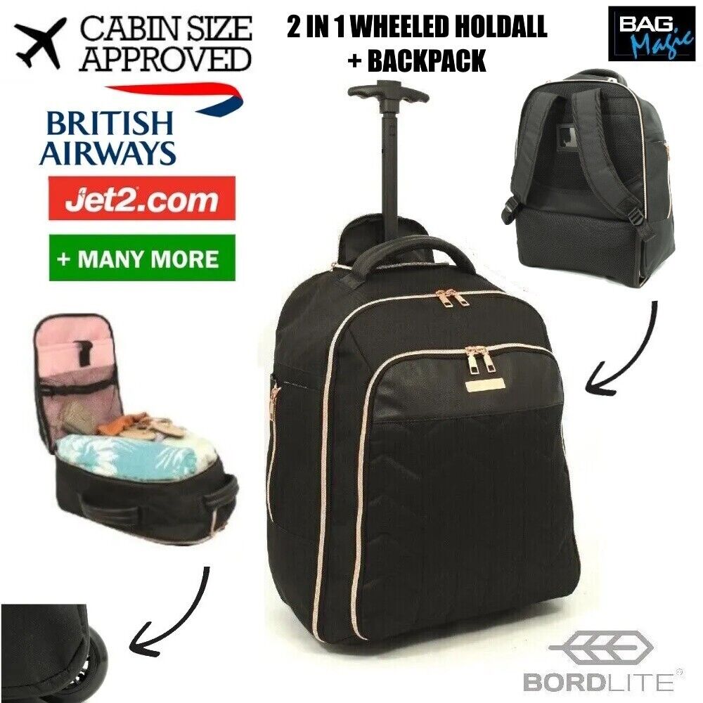 2in1 Cabin Holdall Rucksack on Wheels Trolley Travel Shopping Approved Backpack