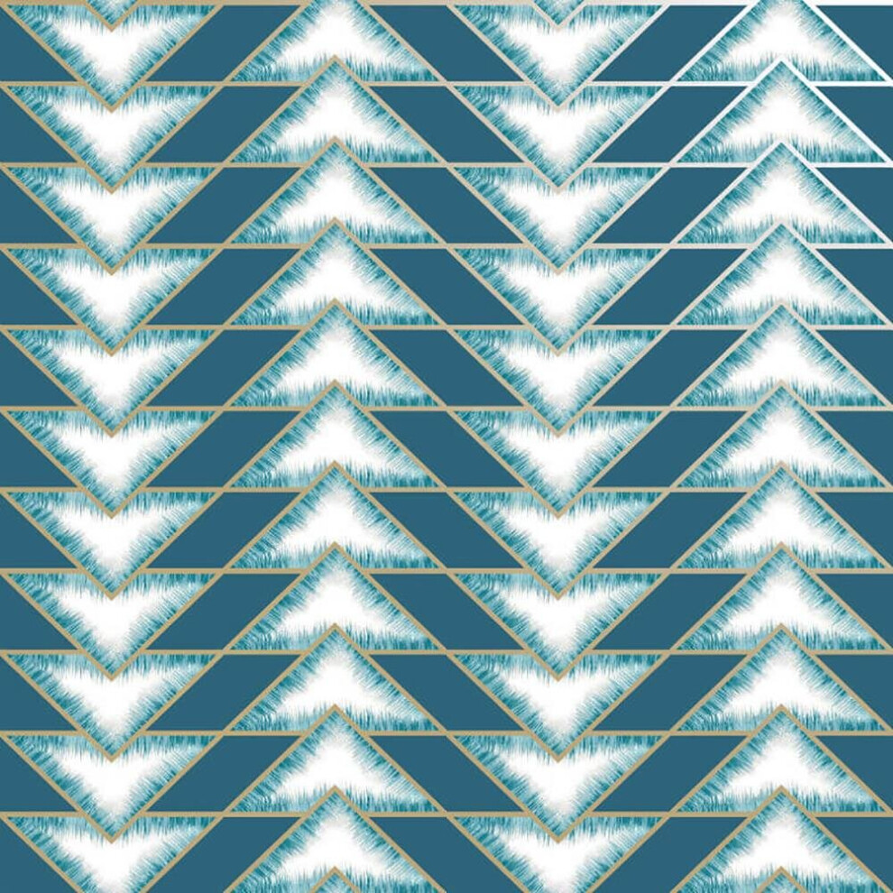 Teton Geometric Wallpaper Holden Teal Gold Metallic Chevron Contemporary