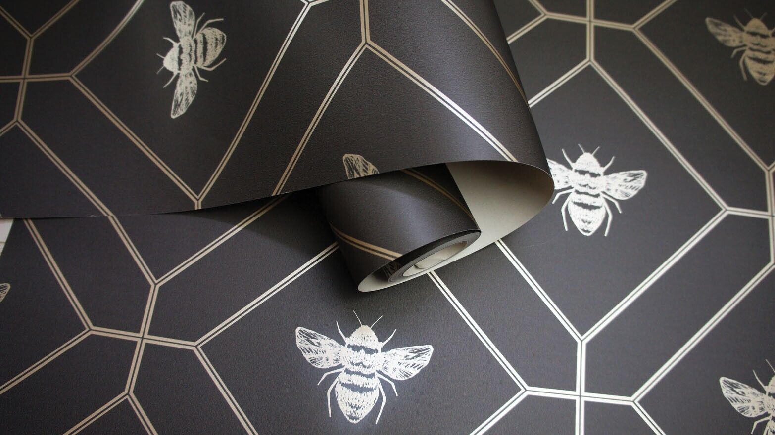 HONEYCOMB BEE CHARCOAL GOLD HOLDEN WALLPAPER 13081