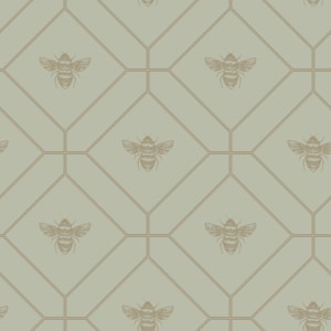 HOLDEN HONEYCOMB BEE GEOMETRIC DIAMOND WALLPAPER METALLIC GOLD SAGE GREEN 13080