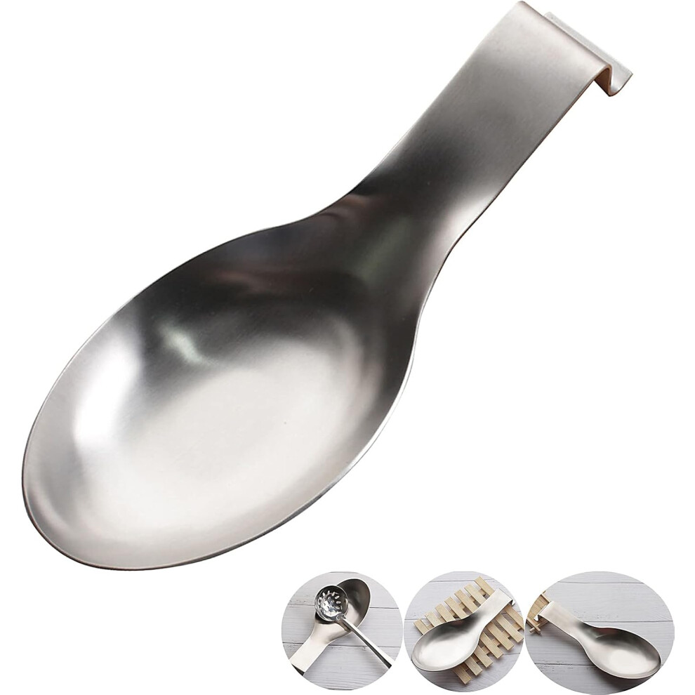 Smooth Edges Spoon Rest, Durable Stainless Steel Holder for Your Cooking Utensils, Long Handle Ensures Stability, Non-Slip Odorless Material for Safe