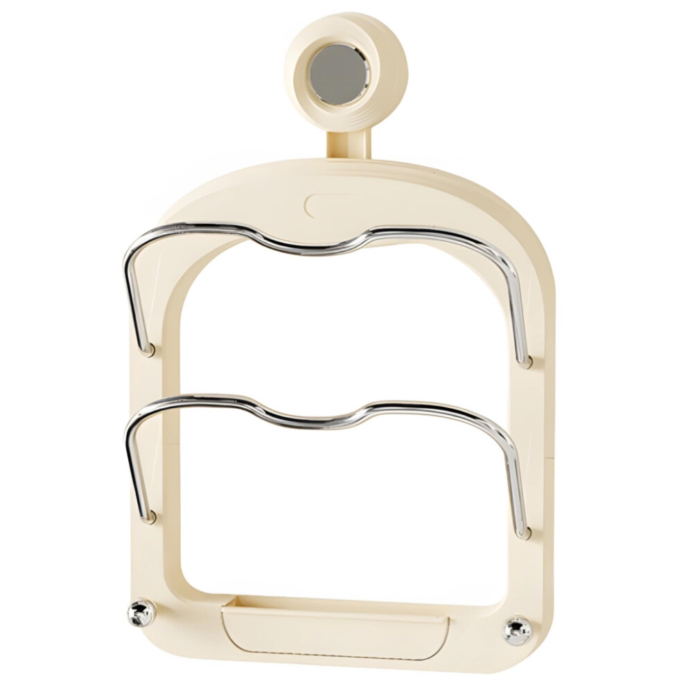 2Tier Pot Lid Organizer with Suction Cup, Wall Mounted Kitchen Holder for Cooking Utensils, Beige