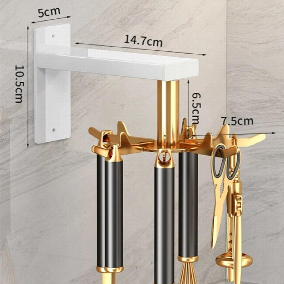 Aluminum Alloy Wall Mounted Hanging Kitchen Storage Rack Holder for Utensils Cooking Tools 6 Hooks Organizer Shelf Accessories