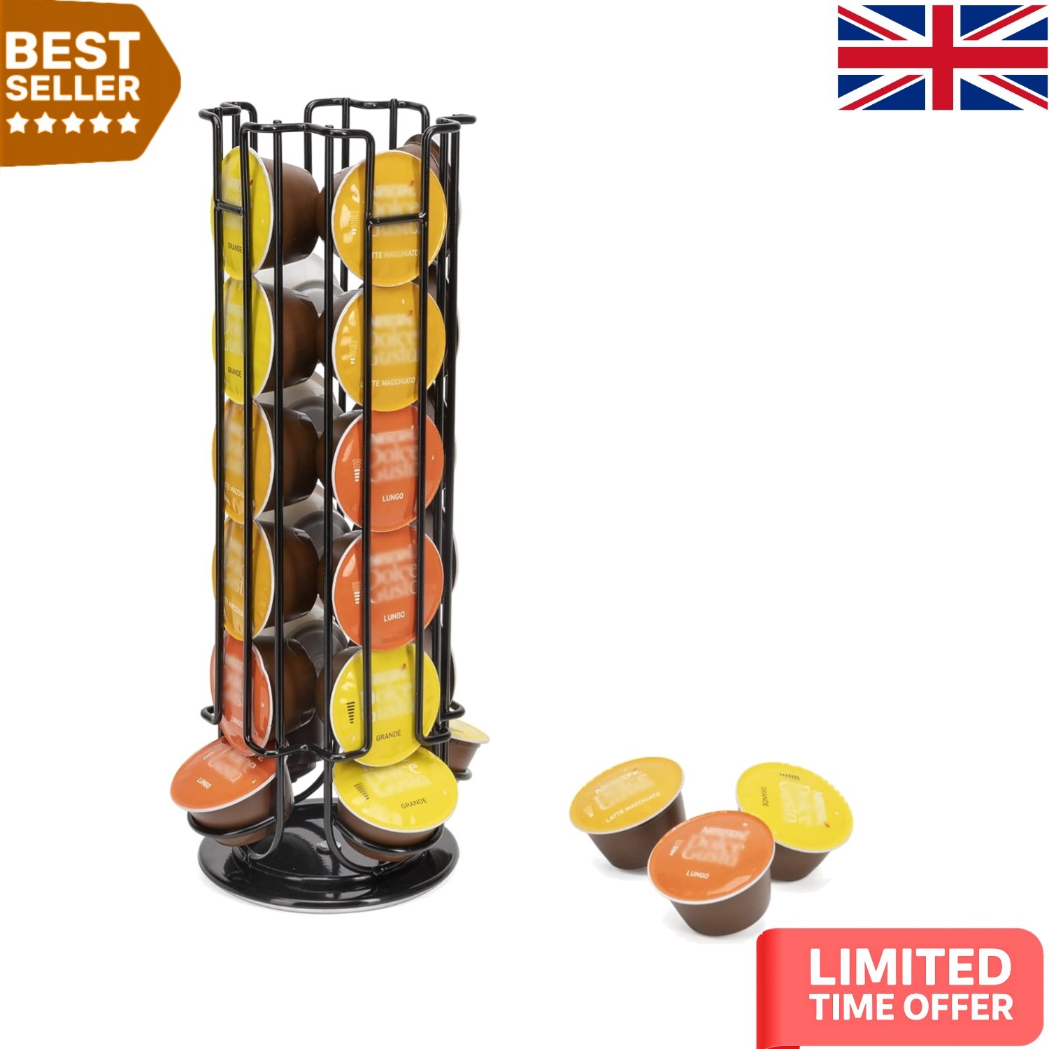 Modern Rotating Coffee Capsule Rack – Safe Holder for 24 Dolce Gusto Pods