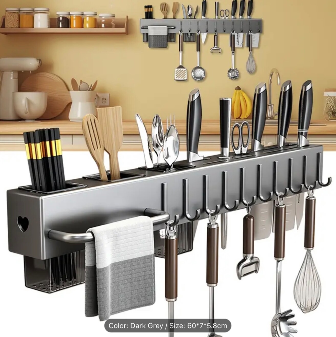 Kitchen Organizer Wall Mounted Utensils Rack Adjust Storage Holders with hooks