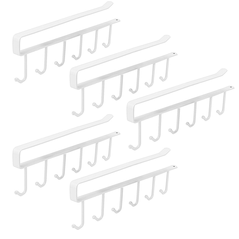 Pack of 5 White Cup Holders, No Drilling Under Cabinet Hooks for Cups, Kitchen Utensils, Ties, Scarves, 265mm