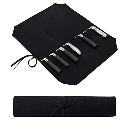 Roll Up Knives Bag, Waxed Canvas Cutlery Knives Holders Protectors, Knifes Roll, Chef Knifes Roll Case with 7 Slots Home Kitchen Cooking Tools, and Utensils Wrap Bag Wallet