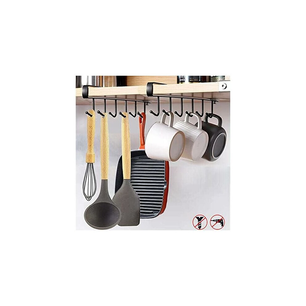 Mug Hooks Under Shelf, Multi-Functional And Versatile Kitchen Organizer for Coffee Mugs and Utensils, Home Storage Mug Holders with Rustic Design for