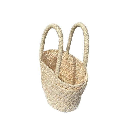 LuoAXINN Beach Straw Bag Retro Straw Woven Handbag Girls Handheld Small Basket Shopping Bag Summer Holiday Beach Bags Women's(Without lining)