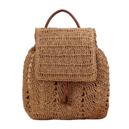 Otbushit Straw Bag Flap Drawstring Woven Backpack Purses Summer Holiday Beach Bags for Women Khaki