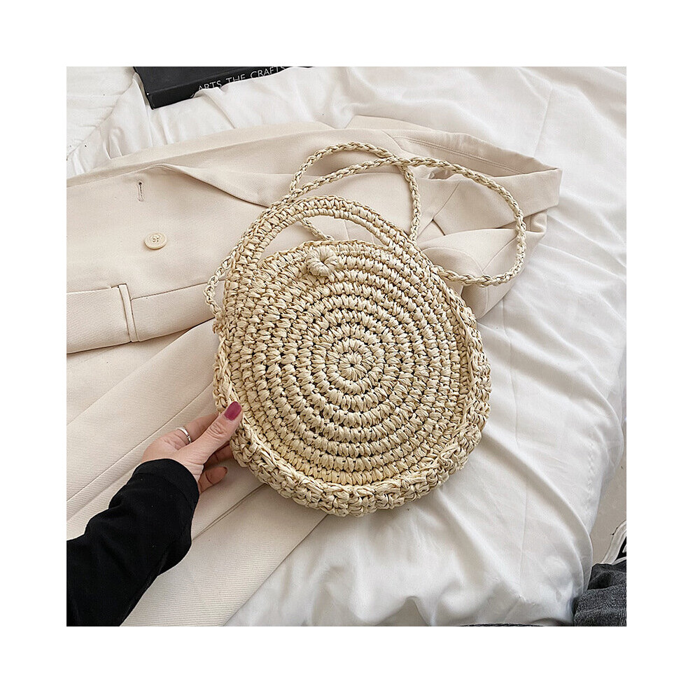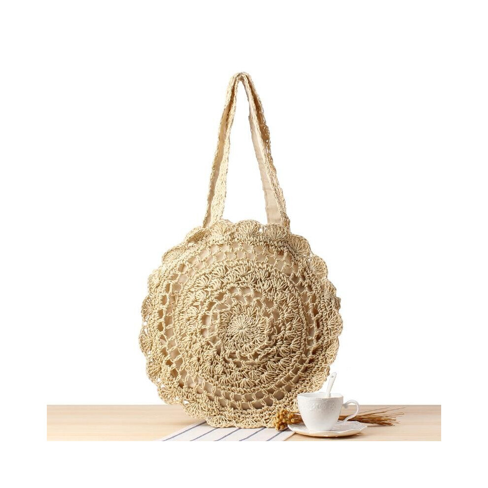 Bohemian Hollow Out Round Summer Straw Bag Crochet Women Beach Holiday Shoulder Bags