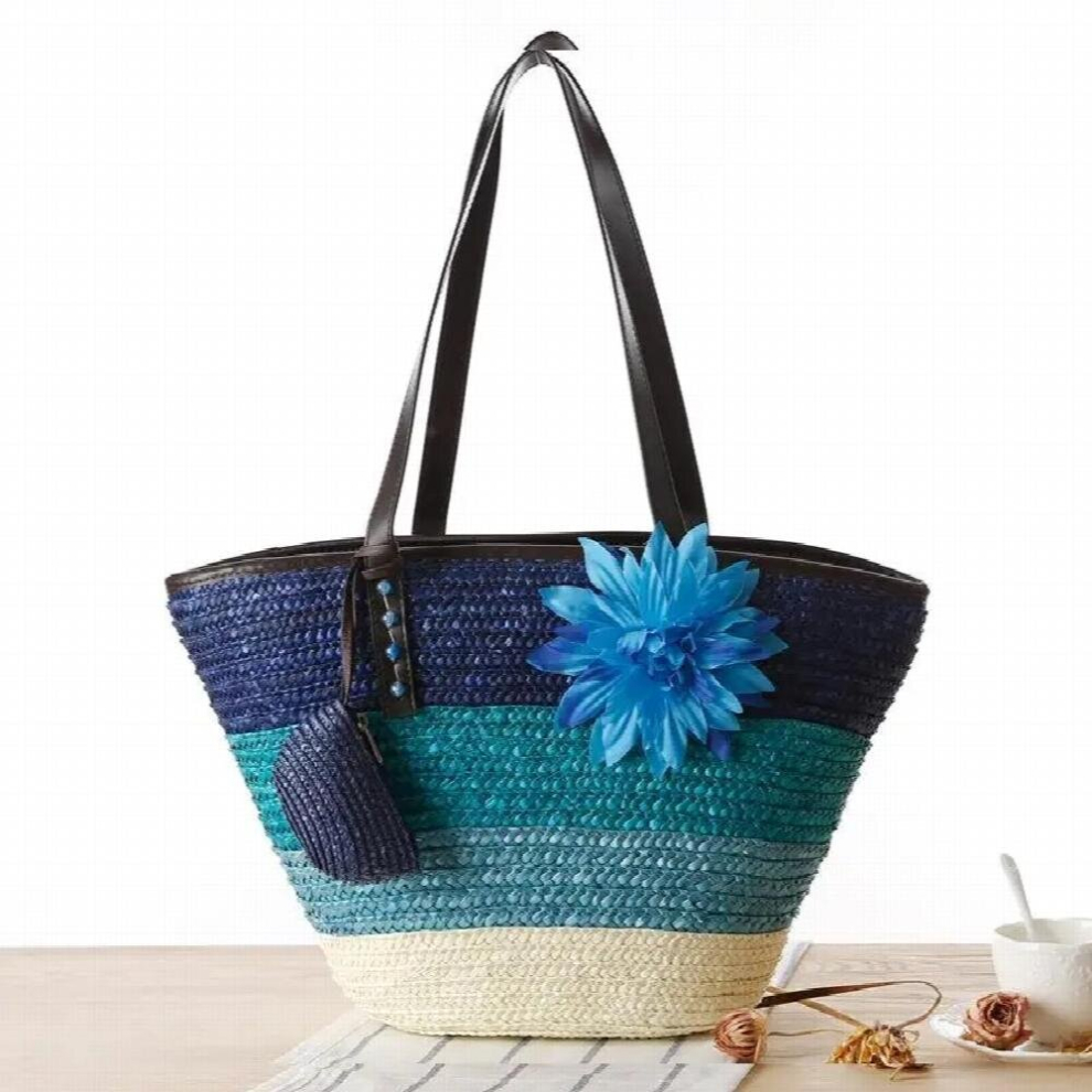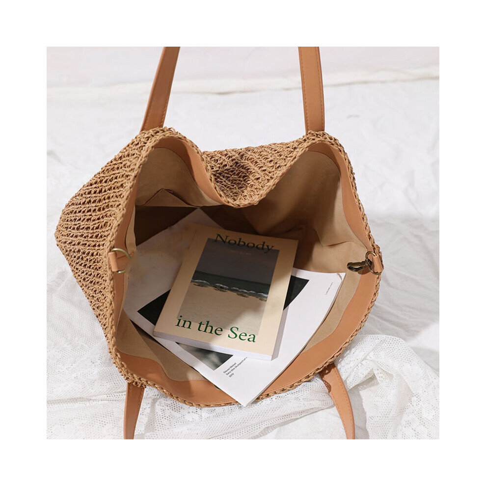 (brown, inner bag) Ladies Holiday Beach Bags Straw Bags For Stylish
