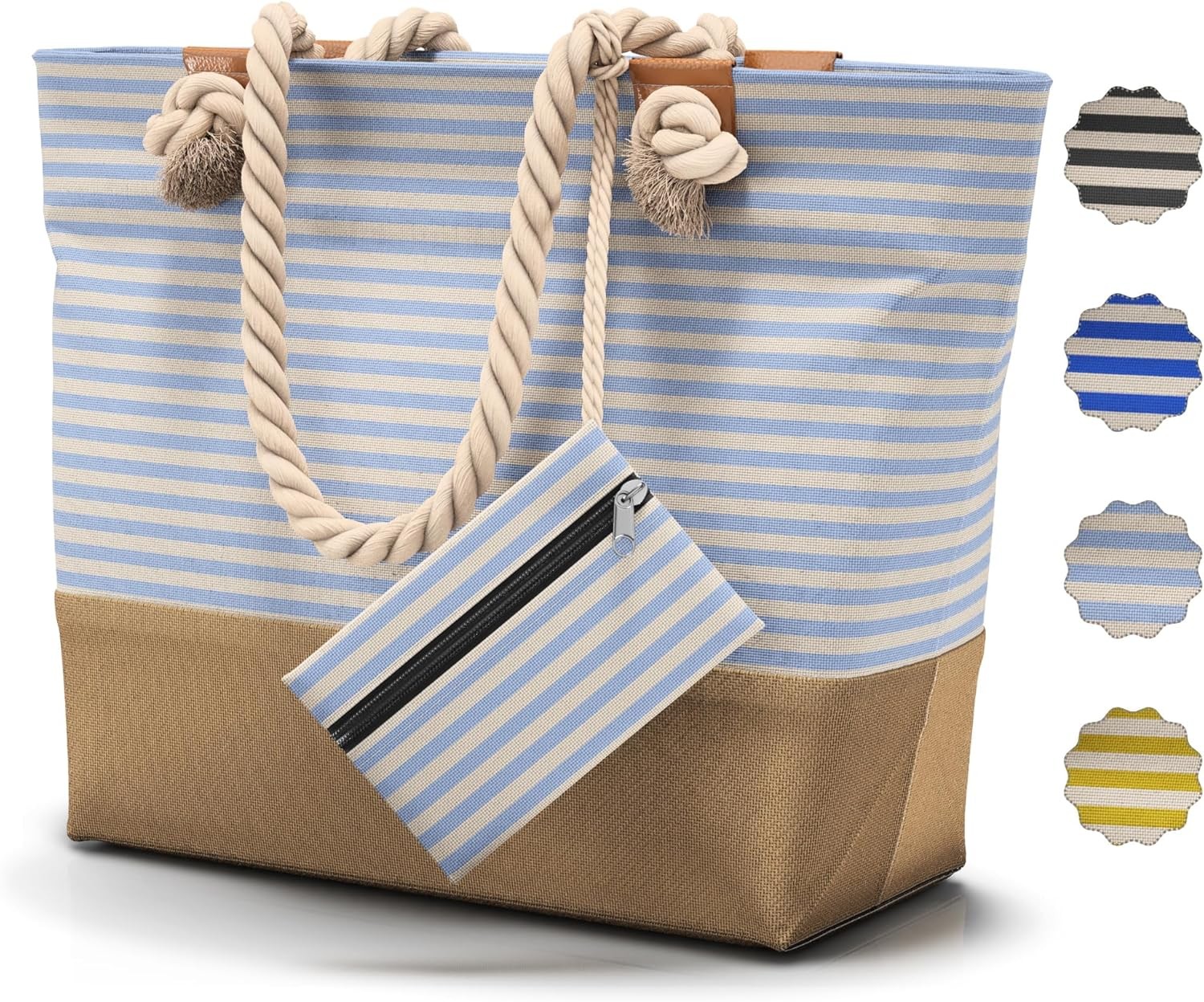 furora HOLIDAY Beach Bags for Women + Men: with Zip and 2 inner pokets (for wet swimwear and valuables) - Large Beach Bag, Travel bag, Weekend Bag, Beach Accessories, Holiday Essentials