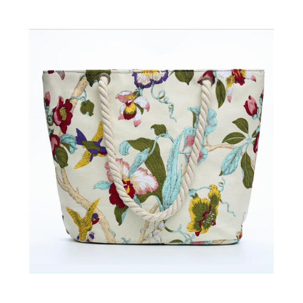 Women Printed Flowers Shoulder Bags Casual Beach Holiday Bags For Girls Cotton Tope Shopping bags MN984