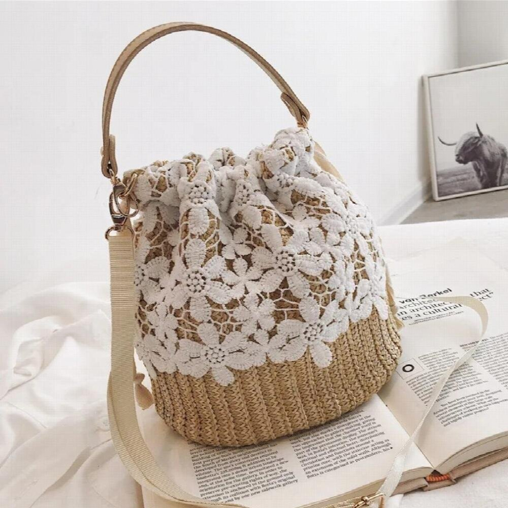 Summer Women Handbags Straw Bags Lace Bucket Beach Holiday Shoulder Bags Crossbody Bag DD30