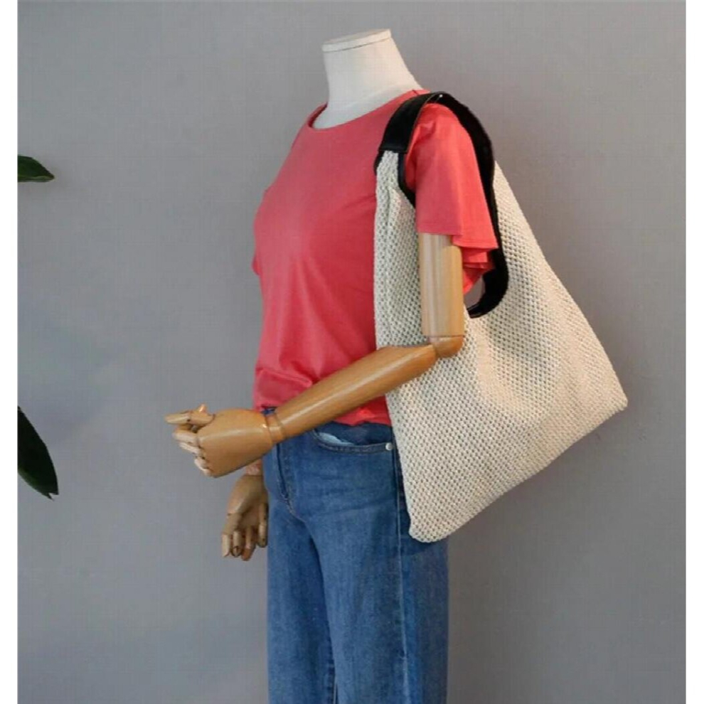Vintage Straw Woven Tote Bags Holiday Beach Bags Hollow Out Handbags With Inner Pouch