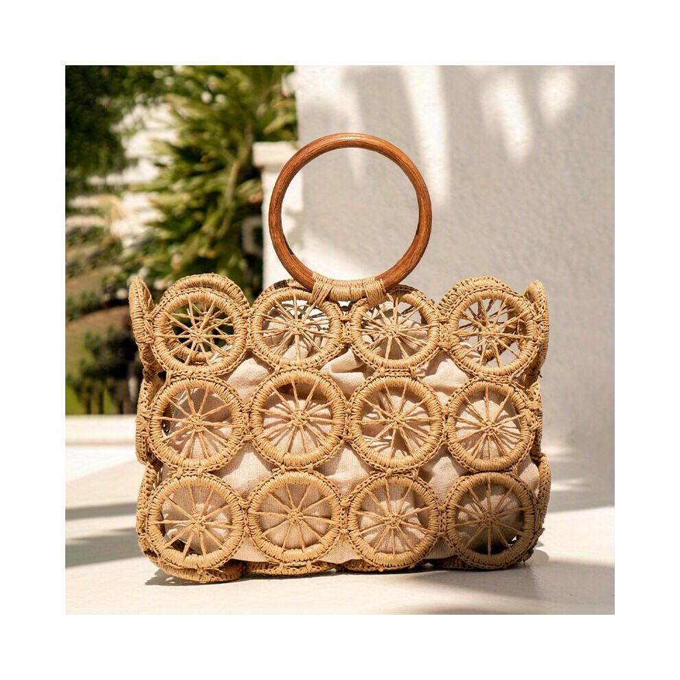 (brown, inner bag) Straw Holiday Beach Straw Bags,Cotton Straw Wooden Bags,Fashionable