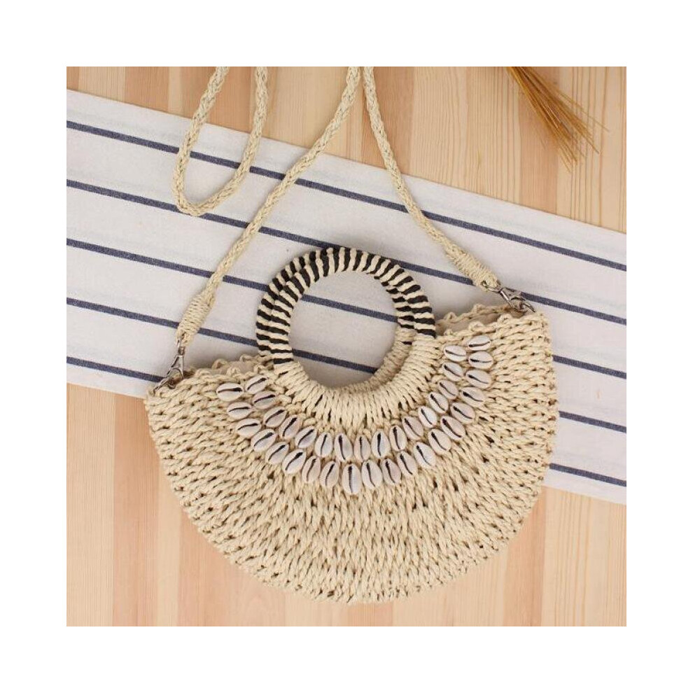 Semicircle Hand Straw Woven Bag With Shell Summer Leisure Handbag Holiday Beach Women Shoulder Bags