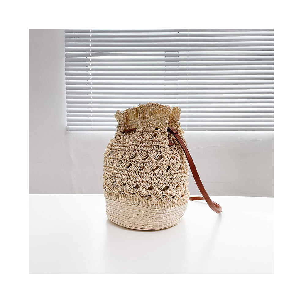 Bag For Women Summer Woven Bucket Bag Holiday Lady Beach Bags Casual Drawstring Crossbody Bag