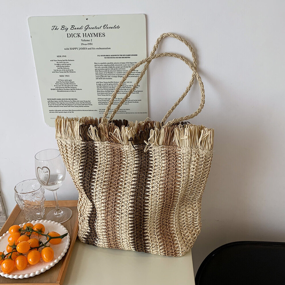 Women's Striped Shopping Bag Fashion Seaside Holiday Paper Beach Shoulder Bags for Lady