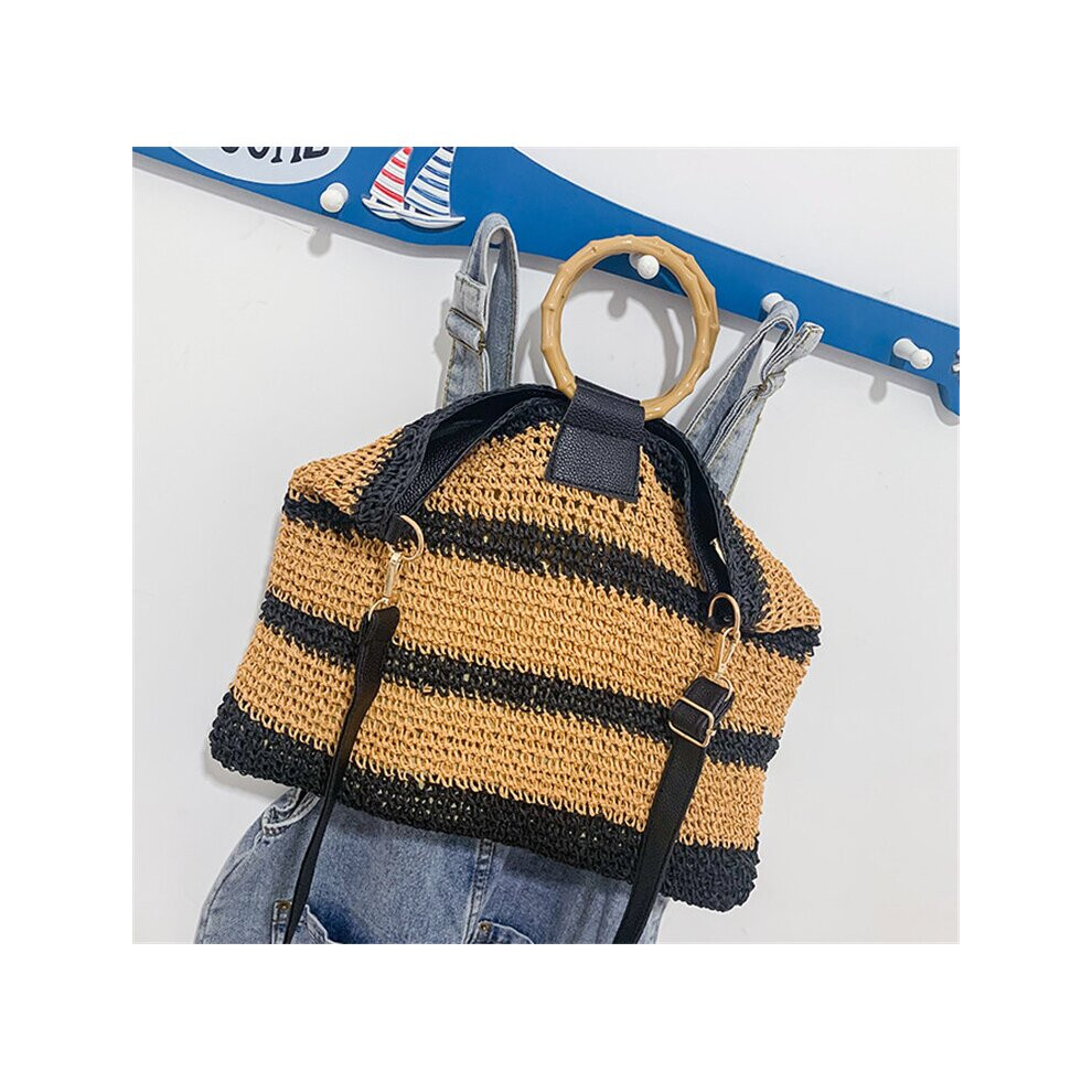 Stripes Straw Shoulder Handbags Summer Beach Holiday Totes Bags Woven Women Shoulder Bags Shopping Bags