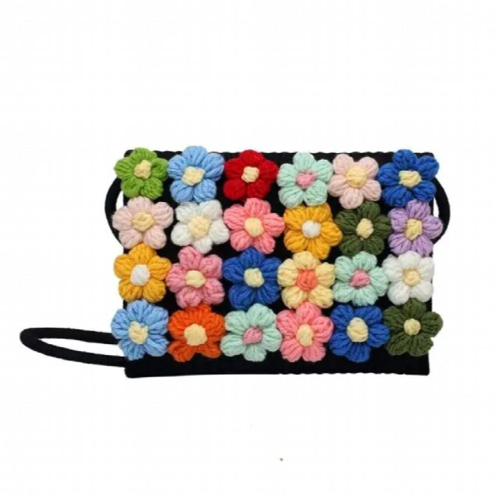Woven Flower Square Bag Straw Messenger Bag For Women Girls Floral Beach Holiday Shoulder Bags Purse