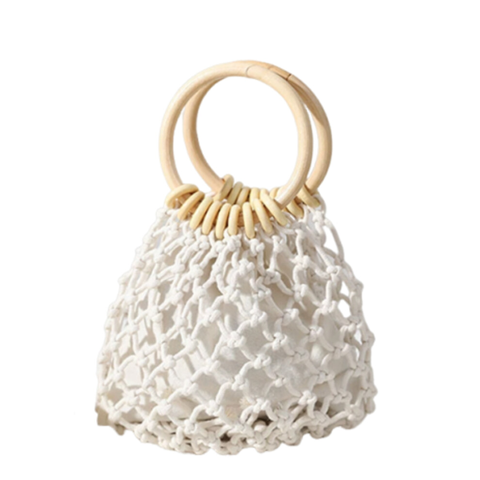 (white, inner bag) Straw Holiday Beach Straw Bags,Cotton Straw Wooden Bags,Fashionable