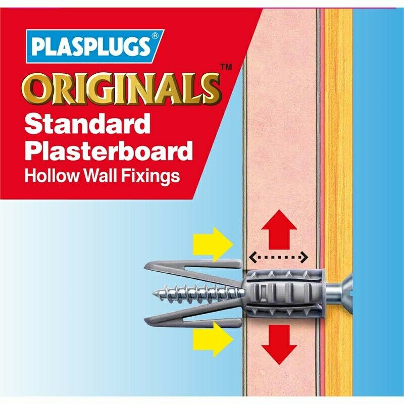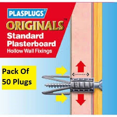 50 x Plasplugs Originals Plasterboard Hollow Wall Fixings Wall Plugs 7mm Drill
