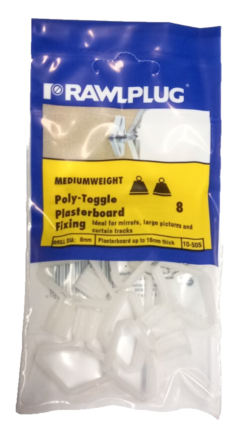 Poly Toggle Plasterboard Fixings Hollow Cavity Stud Wall Medium Weight 8 Pack