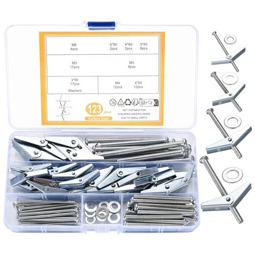 qxayxa 123 Pcs Plasterboard Fixings - Wing Spring Toggle Bolts and Drywall Screws, M3/M4/M5/M6 Spring Toggle Fixings, Hollow Cavity Dry Wall Anchors Screws and Wing Nuts