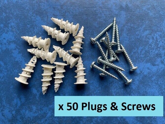 50 x Plasterboard Fixings Plugs Plasplugs for Hollow Wall Cavity Dry Lining NEW.