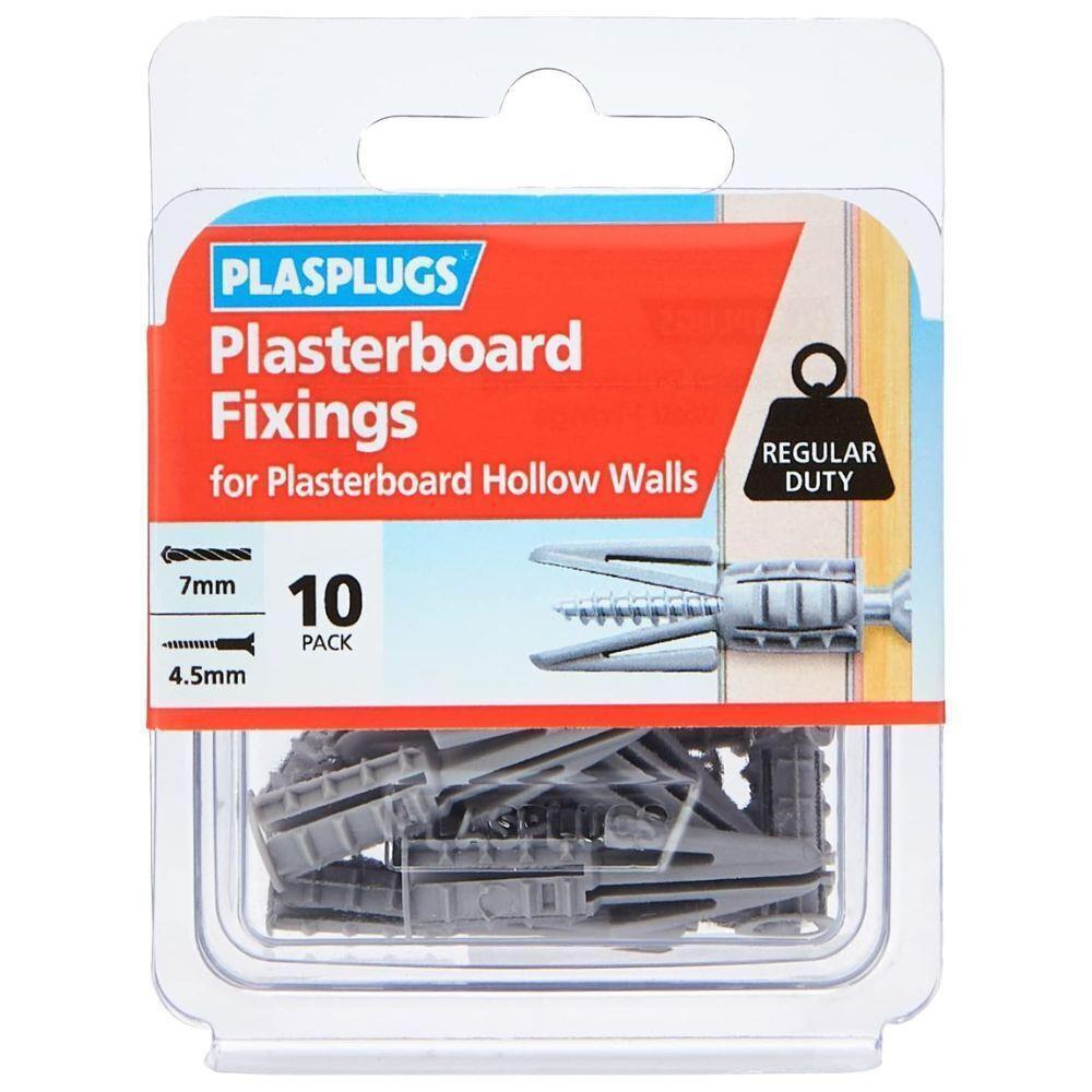 10 x Plasplugs Originals Plasterboard Hollow Wall Fixings Wall Plugs 7mm Drill