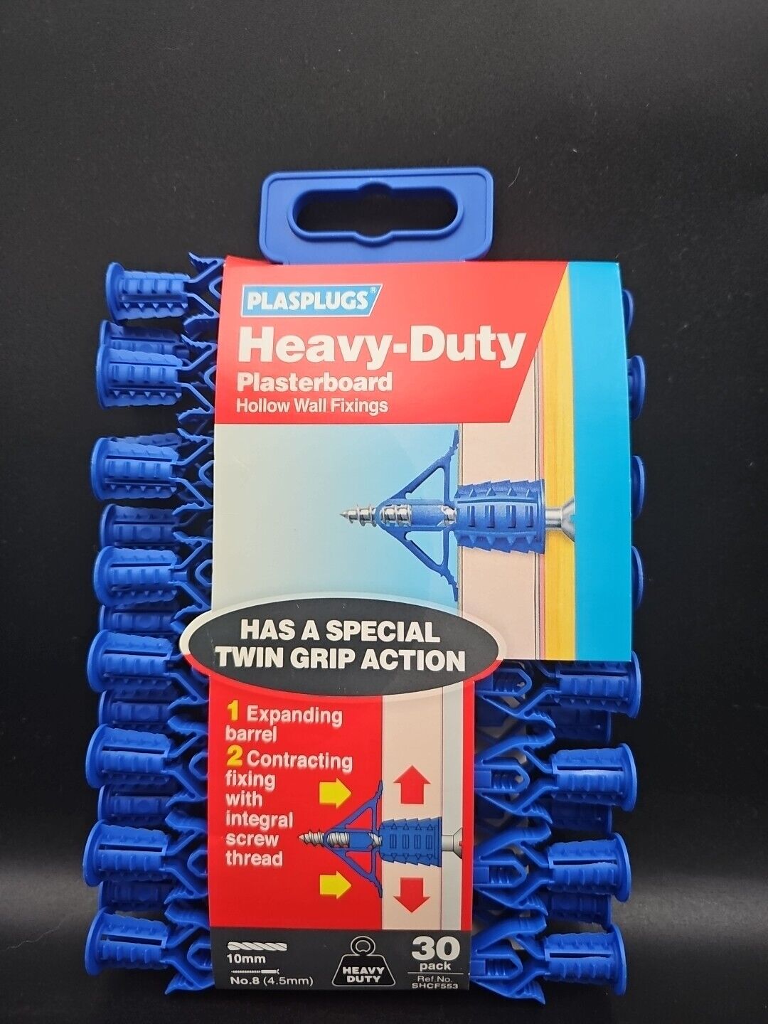 30 x Plasterboard Fixings Plasplugs Heavy Duty Cavity Hollow Wall Drywall Plugs