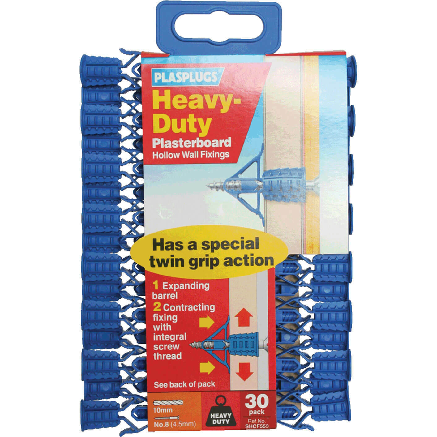 Plasplugs Heavy Duty Plasterboard Hollow Wall Fixings Pack of 30