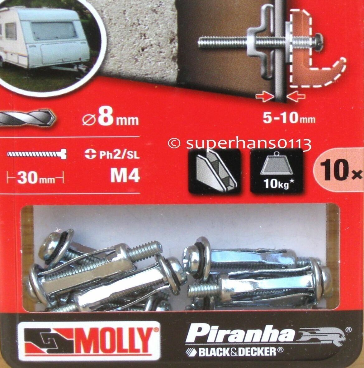 10 B&D Molly M4 x 22mm Caravan Motorhome Hollow Wall Cavity Fixings Anchor Plugs