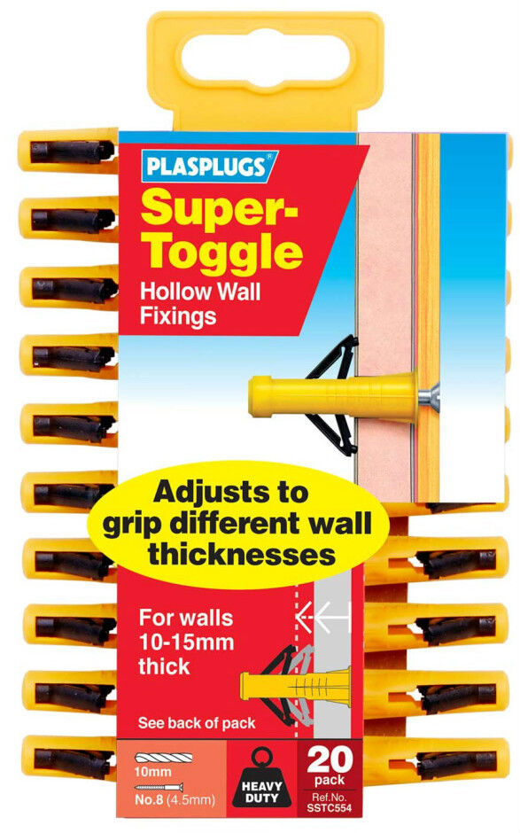 Plasplugs Super Toggle Plasterboard Plugs Hollow Wall Fixings Pack Of 20 Plugs