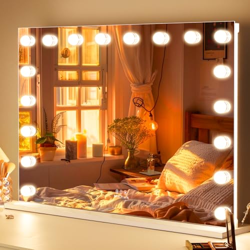 Umeiga Large Hollywood Vanity Mirror with Lights, 100 x 80cm Lighted Makeup Mirror with 19 Dimmable Led Bulbs, Large Lighted Mirror for Bedroom, 3 Color Modes