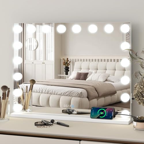 Hansong Bluetooth Hollywood Vanity Mirror with Lights, USB Charging, Touchscreen Control for Bedroom, Large 15 Dimmable LED Bulbs Makeup Mirror