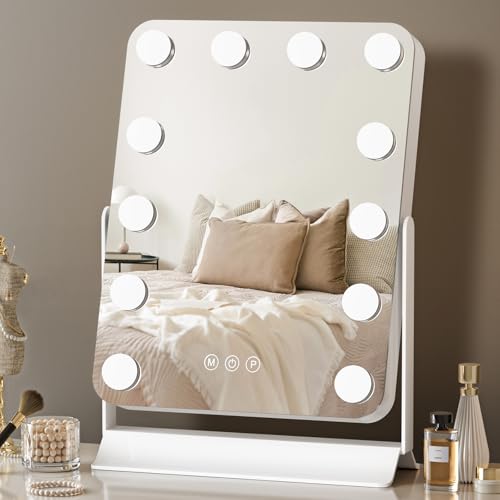 FENCHILIN Hollywood Vanity Mirror with Lights Hollywood Makeup Mirror with 12 LED Bulbs Lighted Vanity Mirror 360 Rotation Smart Touch Control Light Up Makeup Mirror 10x Magnifier