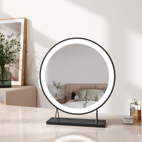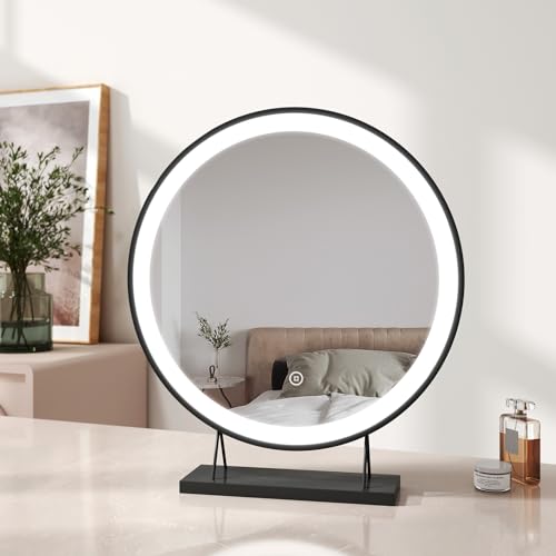 Heilmetz Hollywood Vanity Mirror Dressing Table, Vanity Mirrors with Lights, Light up Make up Mirror with Lighting 3 Color Temperature, Round Black Mirror ф48 cm