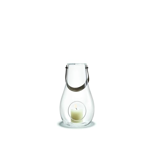 Holmegaard Design Candle Light Lantern, Glass Lantern with Core Leather Handle, Decorative Lanterns for Indoor and Outdoor Use, Smoke, 29 cm