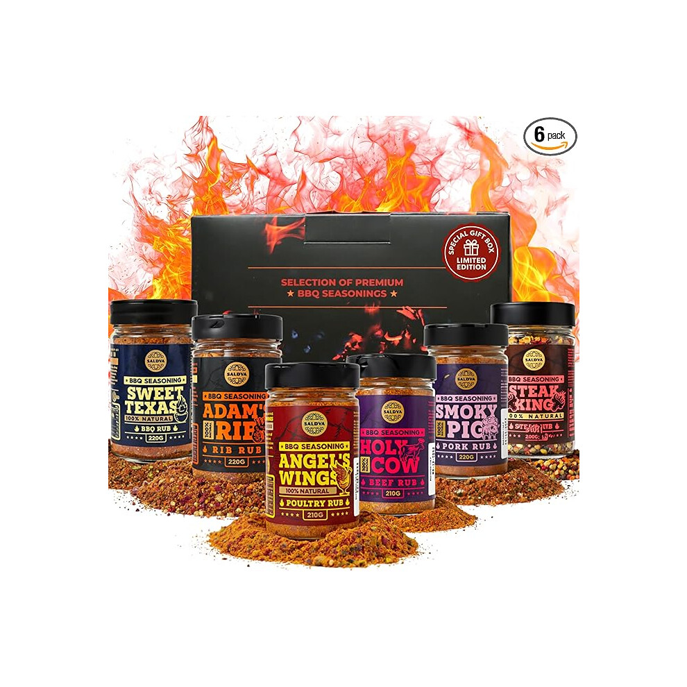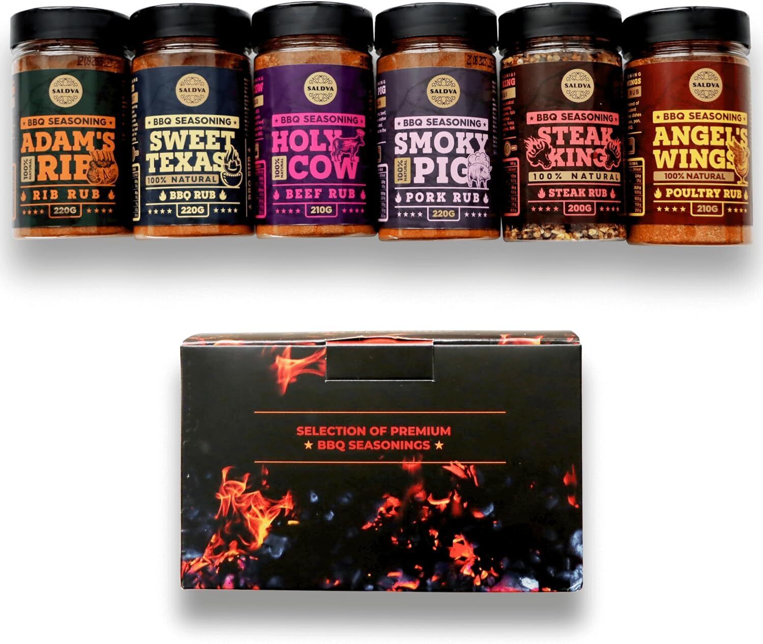 Meat Lovers BBQ Rub Gift Set Holy Cow Angels Wings Smoky Pig Sweet Texas Steak King & Adam Ribs BBQ Rubs Pack of 6 100% Natural Spice Gift For Foodie