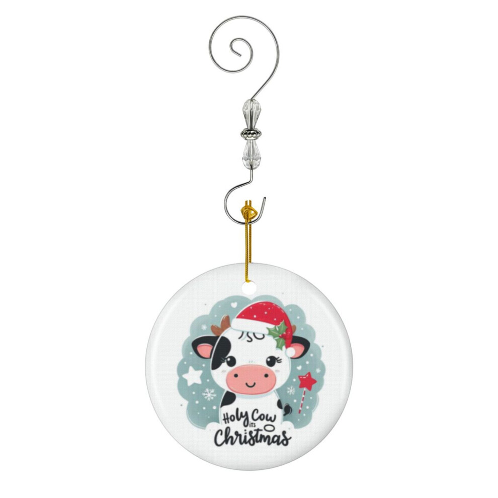 (Cute 'Holy Cow Its Christmas' Christmas Cow_528) Christmas Ornaments Ceramic with Crystal Hook Xmas Handmade Tree Decorations Keepsake Gifts Stockin
