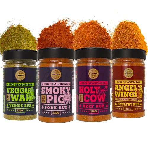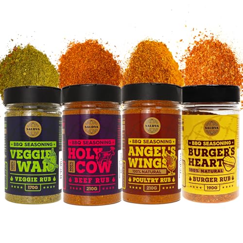 Universal Selection of Premium BBQ Seasonings - Holy Cow, Angel's Wings, Burger's Heart, Veggie War BBQ Rubs | Pack of 4 | 100% Natural | Spice Gift