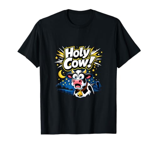 Holy Cow Country Farm Pun Cow Moon Stars Graphic T-Shirt